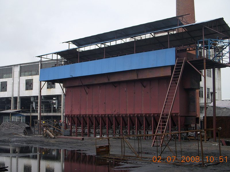 型煤烘干機是型煤生產(chǎn)線中最后一道工序,也是最關鍵的一道工序,其設備投資約占全套裝置的50%。七十年代烘干機采用窯頭吹風、窯尾引風,兩頭溫差大概在100度,溫度不均且無自動除灰裝置,窯頭極易自燃,使得烘干機鏈輪支架受熱變形,發(fā)生偏鏈、卡鏈,從而影響正常運轉。從99年開始,我公司與黑龍江科技大學、北京煤科院多位專家教授合作,在以前結構的基礎上,改進成窯體中心供風,導軌托架由原來的槽鋼變?yōu)楝F(xiàn)在的無縫鋼管(中間設有熱脹冷縮調節(jié)管套),窯內設有多個測溫區(qū),每2米一段均配有調風閥和熱冷收縮節(jié),從而多點均和由熱脹冷縮引起的長度差,杜絕了熱變形現(xiàn)象,整體窯室內最大溫度差不超過20度。本烘干機采用翻板式輸送,翻板選用鋼板、圓鋼焊接成,不宜變形、透氣性好,還設有外配重式自動張豎軒,鏈板運行平穩(wěn),翻轉自如,在運行過程中不跑偏、不卡鏈、不掉鏈。鏈板由調整電機傳動,可根據(jù)需要調節(jié)運行程度,隨意控制烘干時間;本烘干機還配有環(huán)鏈式自動除灰裝置,能耗低、熱效率高,除灰效果好。